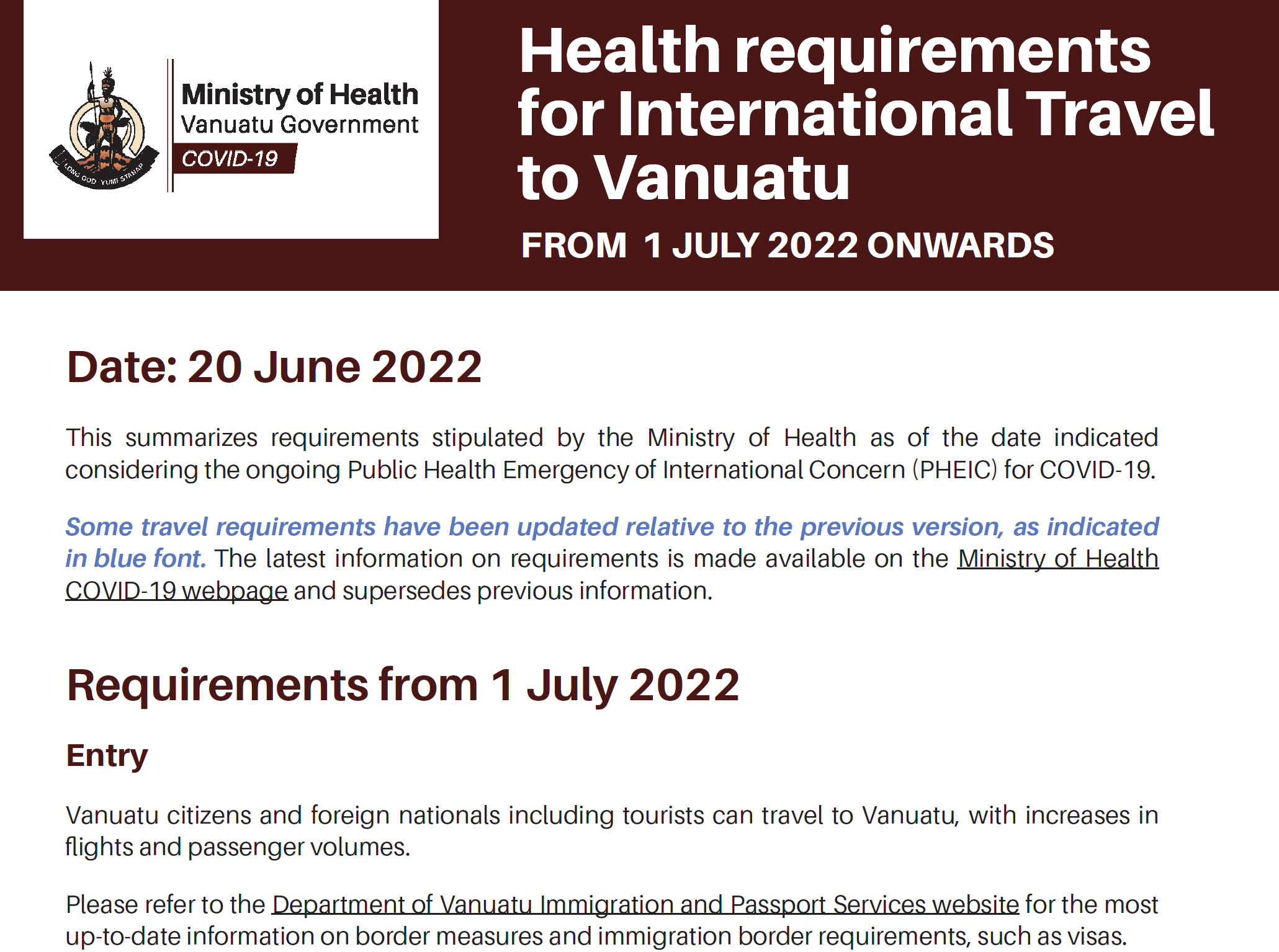 오늘 바누아투 보건부에서 7월 1일부터 바누아투 여행자들을 위한 안내문이 나왔습니다.