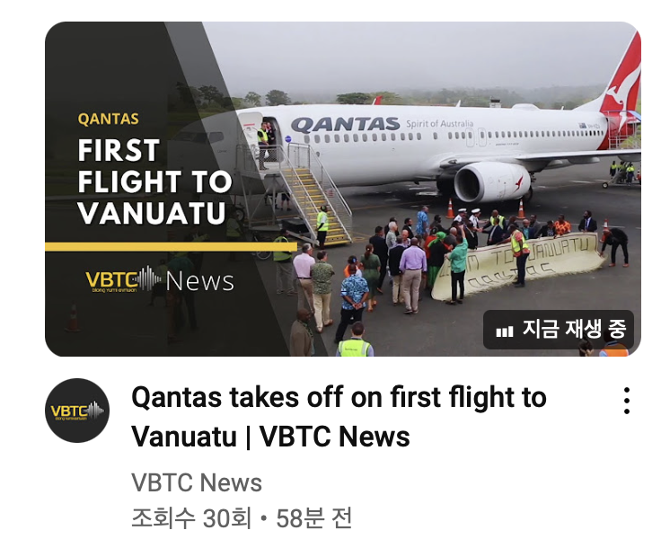 브리즈번에서 포트빌라 편입니다. 이제 관광객도 늘어날 듯 하네요.